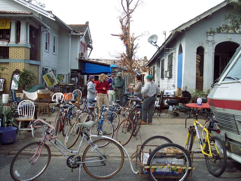 Bikes were donated by a local bike shop for riding to join the march, JUSTICE AFTER KATRINA.